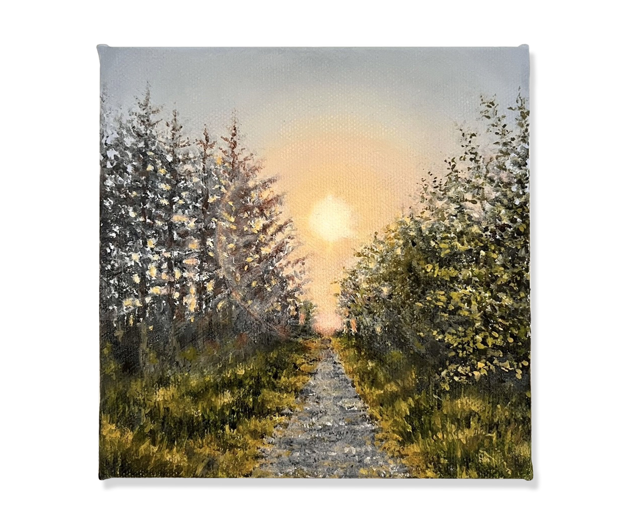 Oil on deep-edge canvas canvas. Measures approx 15cm x 15cm unframed.